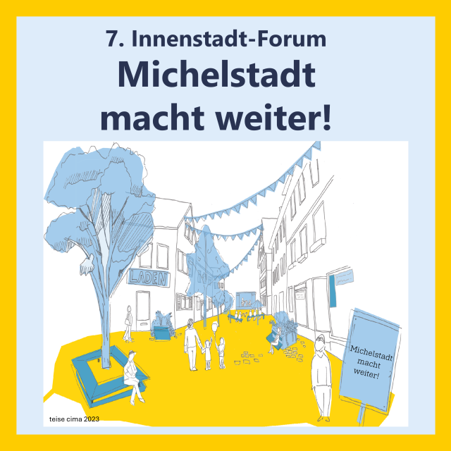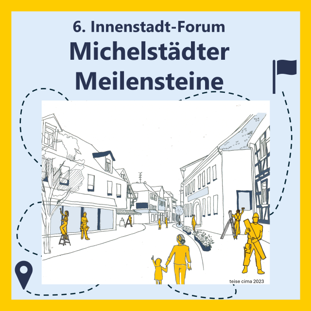 Zur aktiven Teilhabe der Michelstädter Gesellschaft an den innerstädtischen Entwicklungsprozessen finden regelmäßig Innenstadt-Foren statt. Das Innenstadt-Forum ist ein offenes Veranstaltungsformat, zu welchem alle Interessierte herzlich eingeladen sind. Im Rahmen des Bundesförderprogramms „ZIZ“ werden die Innenstadt-Foren zur Stärkung innenstadtbezogener Kooperationen zweimal jährlich bis August 2025 durchgeführt. Im Fokus stehen der kontinuierliche Austausch, die Beteiligung an aktuellen Entwurfsplanungen sowie das gemeinsame Handeln für die Belebung der Innenstadt. Zudem werden Projekte vorgestellt, die im Rahmen des Verfügungsfonds „Schönes Michelstadt“ realisiert werden.